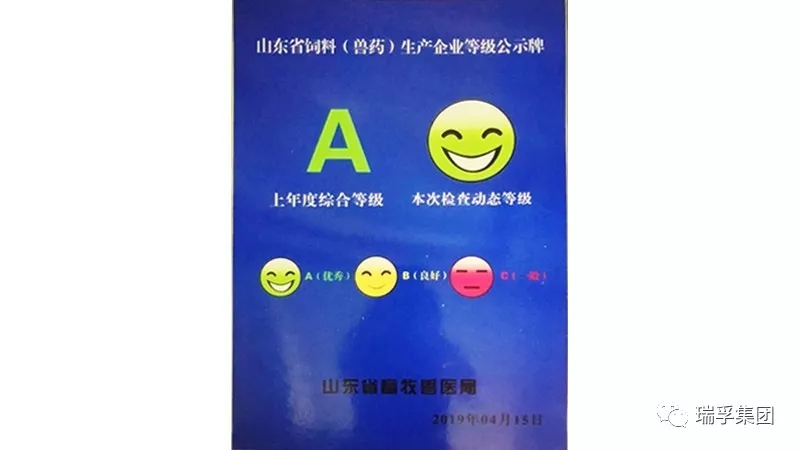 此次会议,,潍坊尊龙时凯饲料有限公司被评为2018年“山东省饲料(兽药)生产企业等级公示牌A级”。。